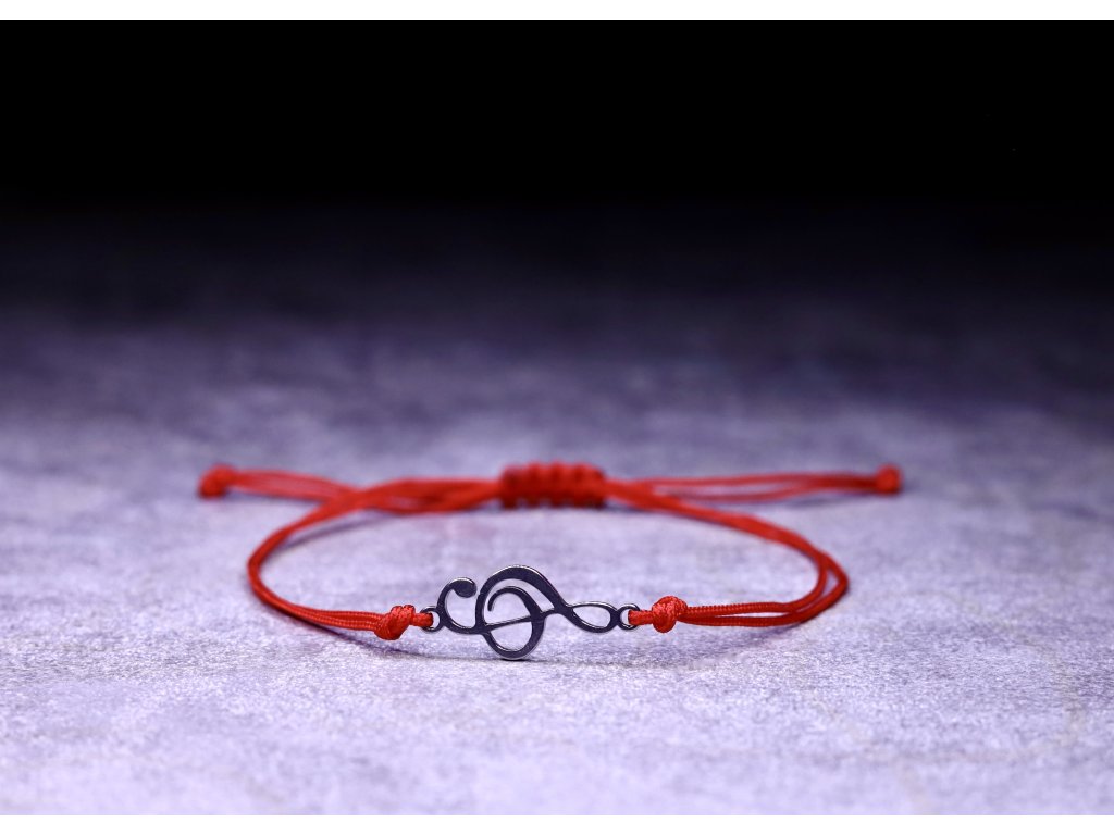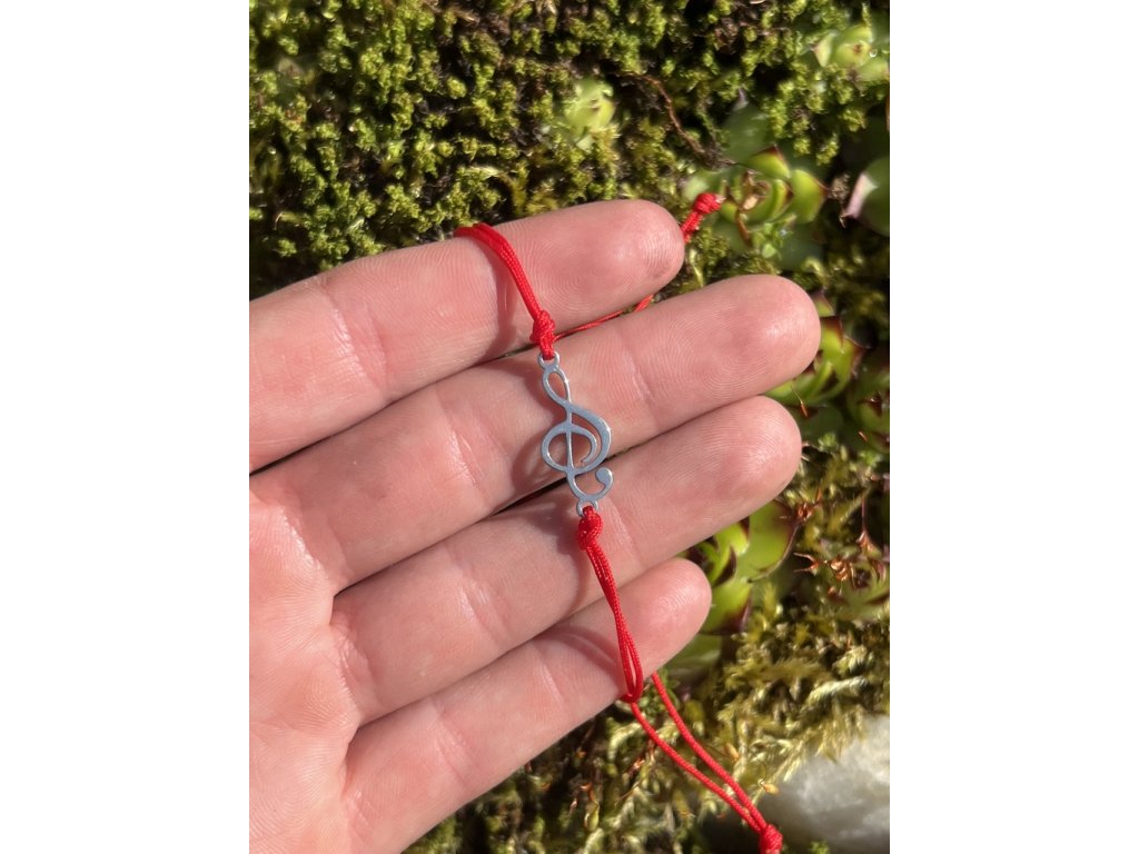 Minimalistický provázkový náramek s jemným stříbrným houslovým klíčem nese nejen elegantní vzhled, ale i hlubokou symboliku. Ručně vázaná červená šňůrka působí jako ochranný talisman, zatímco houslový klíč připomíná sílu hudby, harmonii duše a naslouchání vlastnímu nitru.